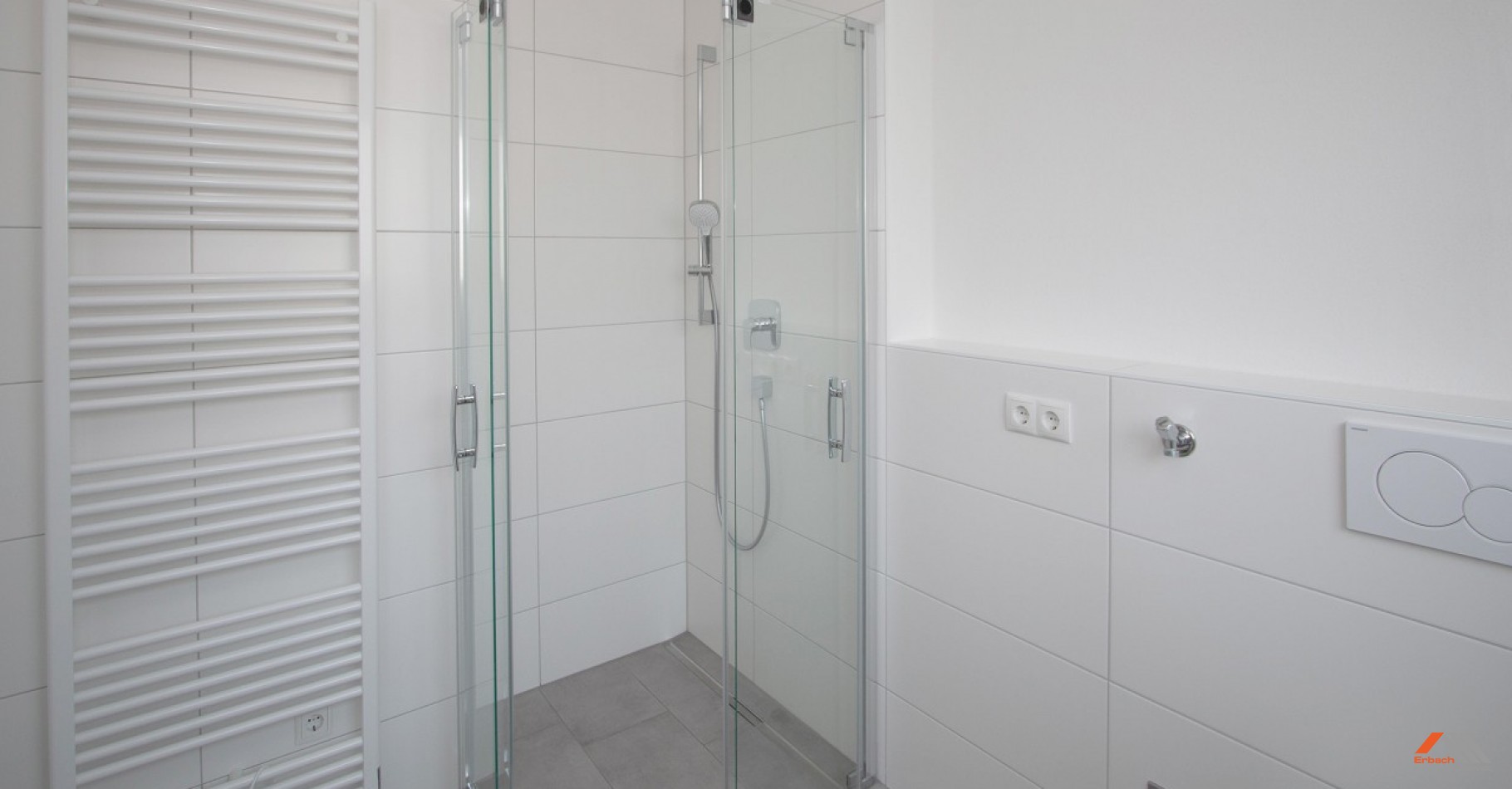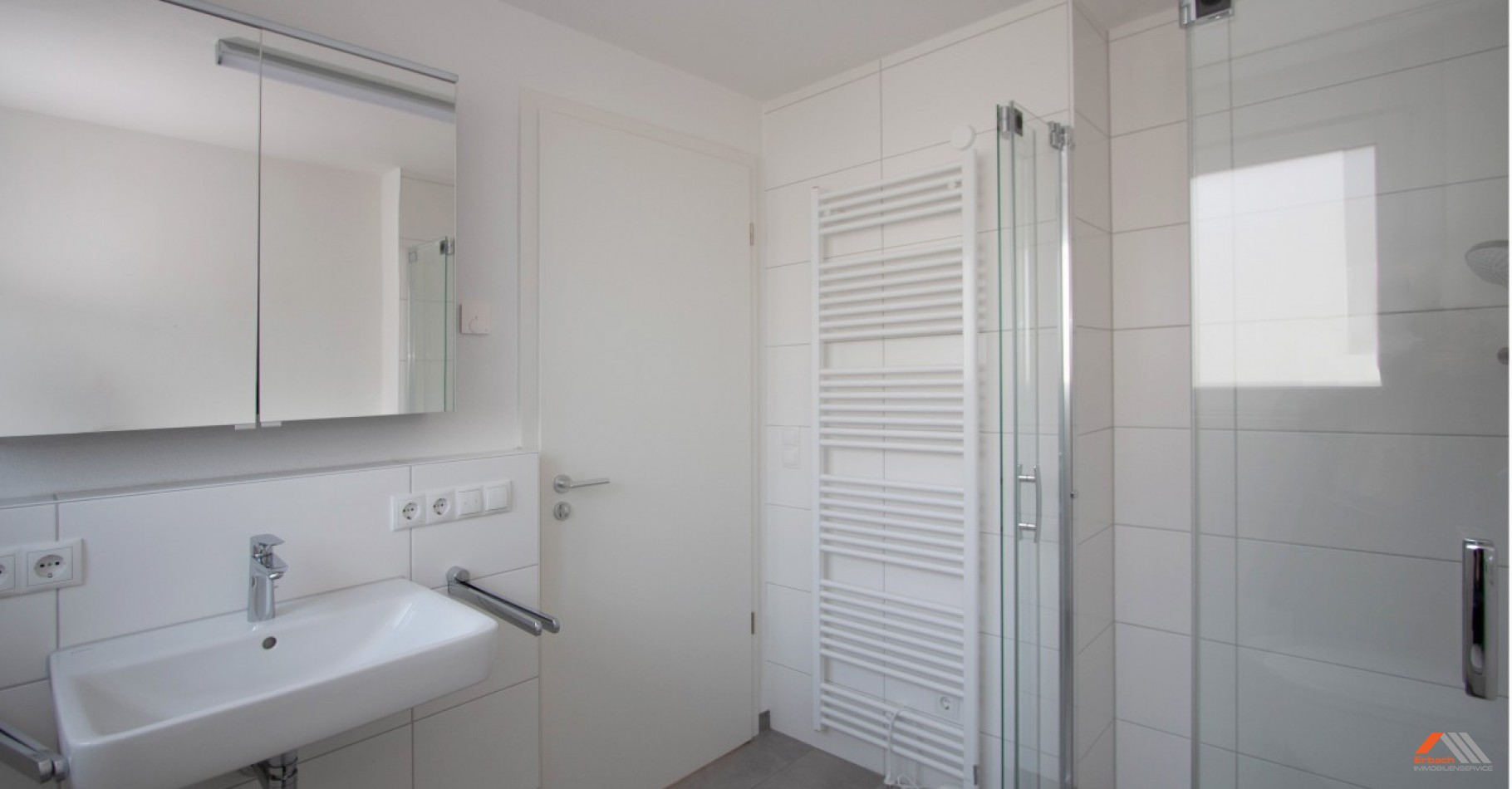 Die Wohnung verfügt über zwei Duschbäder und eine hochwertige Einbauküche (+ 70 EUR/Monat).
